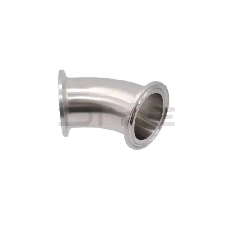 Sanitary Stainless Steel Clamp 45 Degree Elbow nggunakake baja tahan karat 304/316L sing dipilih kanthi ketat, ngilangi bahan daur ulang sing kurang apik lan njamin stabilitas lan kebersihan produk saka sumber.