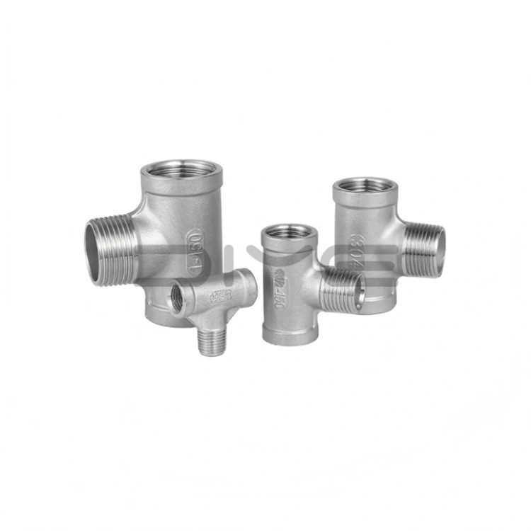 DIYE VALVE Stainless Steel Threaded Tees digawe saka baja tahan karat SS304 (CF8) lan SS316L (CF8M) berkualitas tinggi. Sadurunge ninggalake pabrik, dheweke ngalami tes komposisi spektral kanggo njamin stabilitas mekanik lan tahan karat.